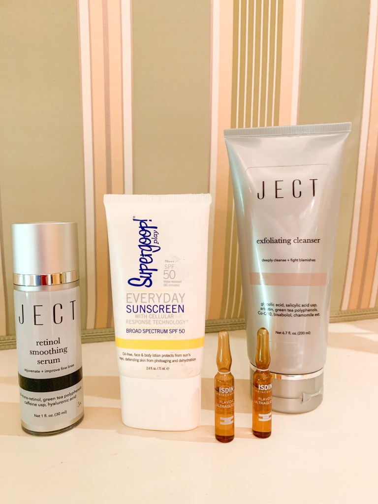 If you ever wondered about the power of acids, then look no further. I know the word acid can be scary, but I am here to assure you this is one product you should have at home, not only during your monthly chemical peel or facial. Whether it be glycolic pads or an exfoliation scrub, glycolic acid not only removes dead skin cells preventing blemishes, but also improves fine lines and skin texture. The exfoliant property of this acid is known as an alpha hydroxy acid, also known as an AHA. AHA’s are known to promote blood flow to skin, treat and prevent acne, and brighten skin. Head on over to my instagram highlight on exfoliation where I break down the difference between an AHA and BHA!